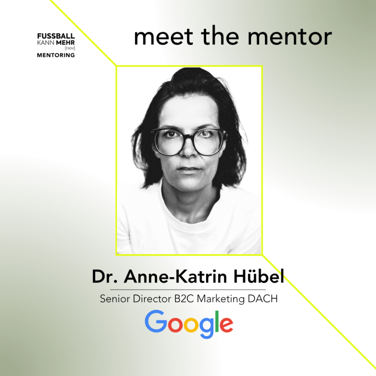Die Mentorin für Juni ist Dr. Anne-Katrin Hübel. Die Senior Director B2C Marketing DACH & Marketing Lead for Platforms & Devices bei Google hat in ihren über 15 Jahren in der Tech-Branche immer an innovativen, neuen Cutting-Edge-Themen und Produkten gearbeitet. So auch am Engagement von Google Pixel als Namenssponsor der Bundesliga der Frauen sowie an der Partnerschaft von Google Pixel mit der deutschen Nationalmannschaft der Frauen, die das Ziel hat, dem Frauenfußball in Deutschland noch mehr Strahlkraft zu verleihen. Sie sieht für Vereine, den DFB, Medien, Sponsoren und Fans noch einen langen und spannenden Weg, um den Frauenfußball voranzubringen. Denn laut ihr fehlt es dem professionellen Frauenfußball immer noch deutlich an Sichtbarkeit, die eng mit Wachstum sowie sportlichem und finanziellem Erfolg verbunden ist.